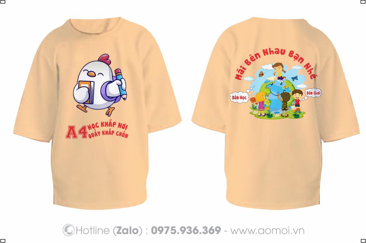 Màu sắc in : In thân trước màu xanh , kem , đỏ , đen ; thân sau in tên lớp 12D12